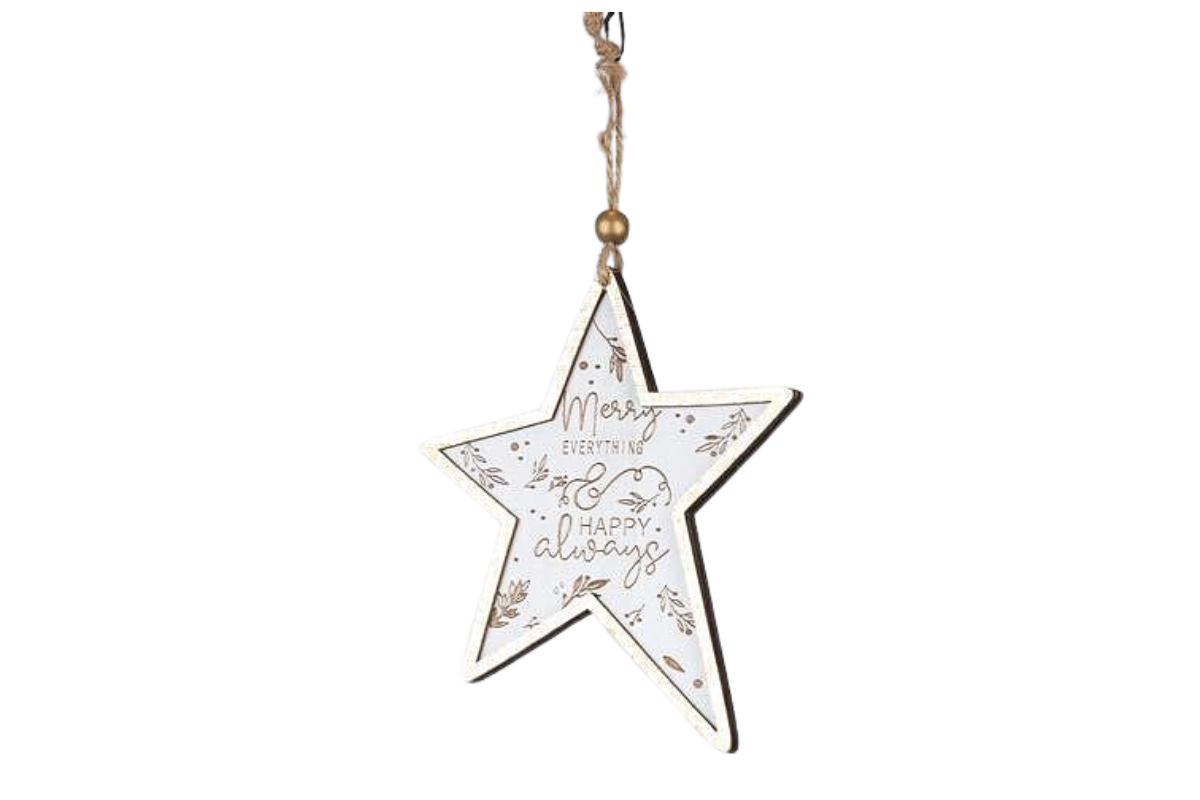 - дървена украса звезда, бяла със златно, 0.5х11х24см