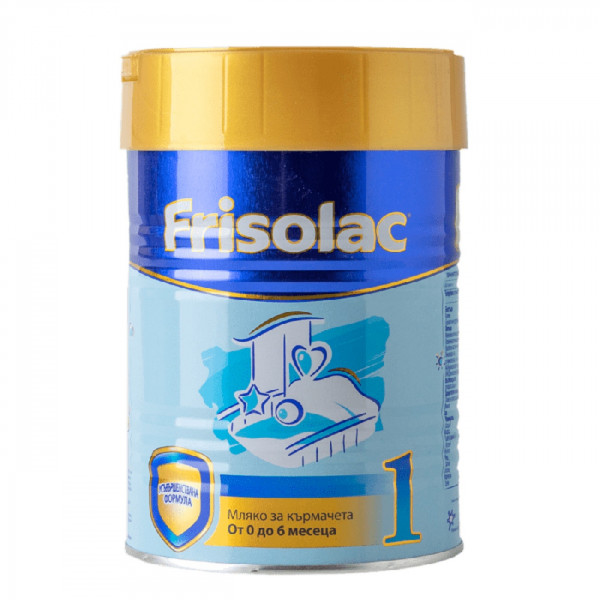 Frisolac 1 адаптирано мляко от 0 - 6 месеца 400 гр е специално създадено, за да замени кърменето от раждането до шестия месец на бебето. Може да се използва веднага след раждането. Обогатено е с есенциални витамини, минерали и мастни киселини, необходими за здравословното развитие на кърмачетата. На 100% отговаря на специфичните им хранителни нужди, нужни за растежа и развитието им.