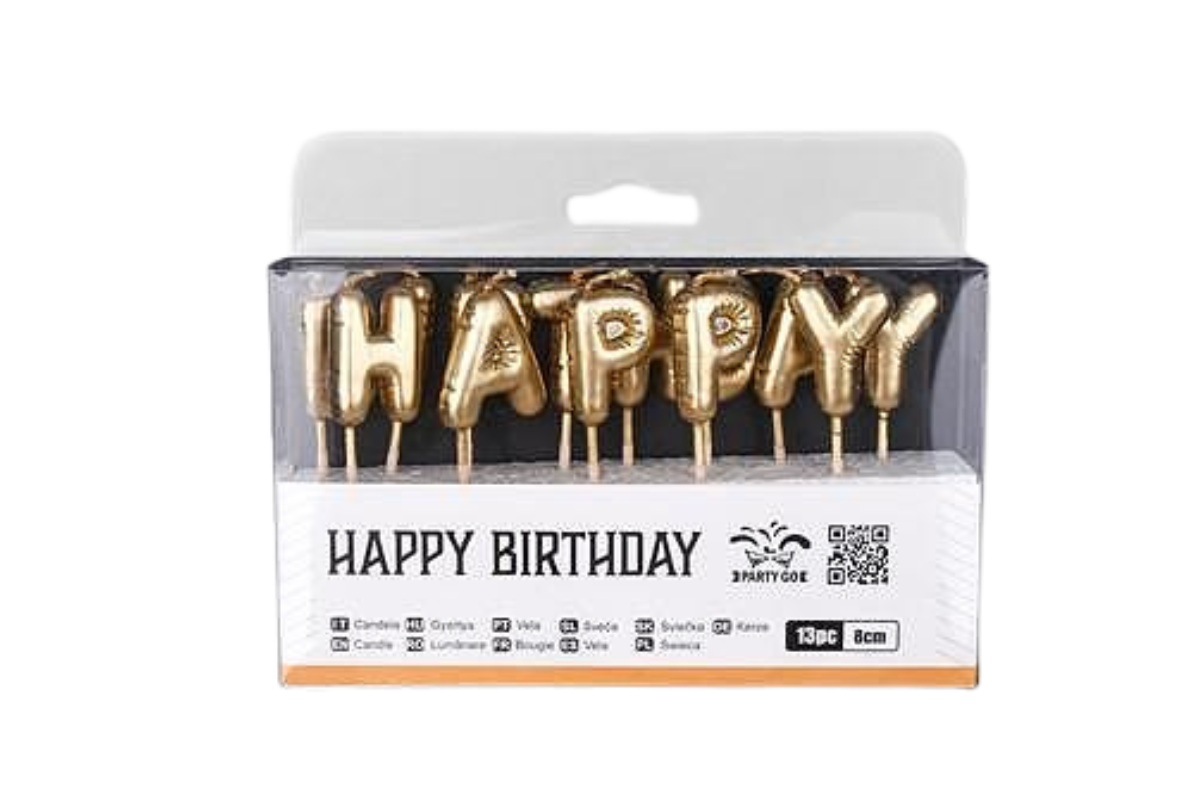 partygo свещ с надпис happy birthday златна 13 бр